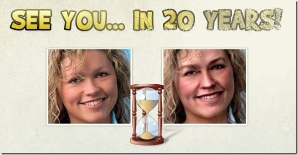 這個網站運用一種特殊的技術,使每個人可以看到自己20年後到底長什麼樣子,當然,有的人天生麗質,20年後可能跟現在長的沒什麼差別,但是,大部分的人還是可以看的出來有明顯的不一樣,回去看看自己年輕時候的照片,跟現在比比就會知道了。